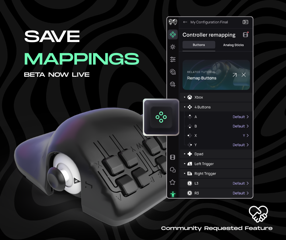 - When mapping more than one of the same peripheral (like two one buttons), the software will randomly choose which mapping to save to which.