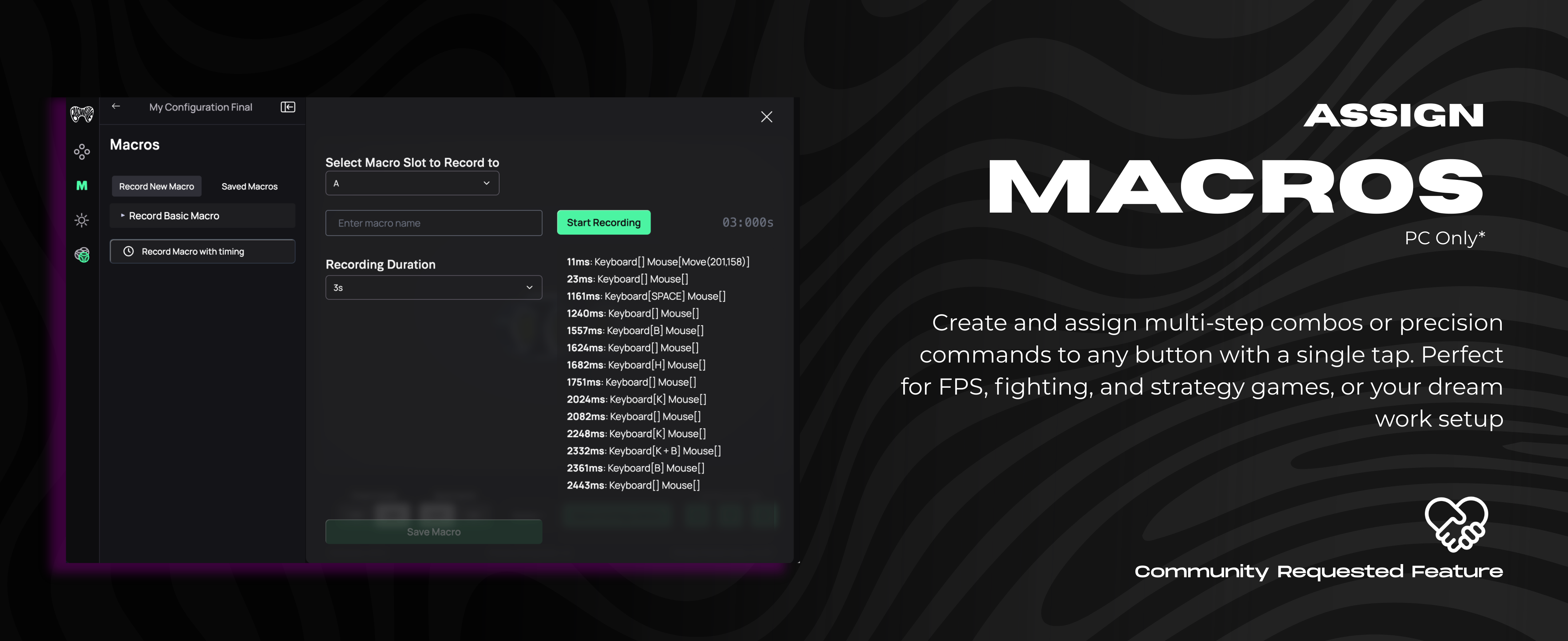 Streamline complex actions and gameplay combos. Only available in HID mode.